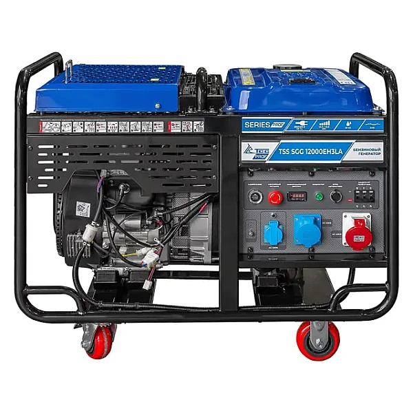 Бензиновый генератор TSS SGG 12000EH3LA - мощная трехфазная электростанция на 12 кВт с электростартером, которая позволяет реализовать различные варианты подключения нагрузки и отличается высокой мобильностью за счет колесного комплекта. Благодаря совместимости с блоками автоматики (АВР) установку можно использовать в качестве резервного источника электроэнергии.