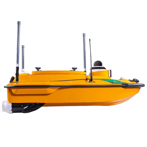 Круизная скорость катера составляет 2-3 м/с, максимальная - 7 м/с . Время работы от одного комплекта батарей составляет 3 ч.