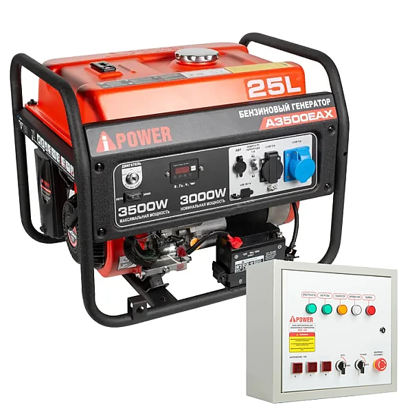 Бензиновый генератор A-iPower A3500EAX + блок автозапуска A-iPower 230В/400В 100А 8 ПИН - надежный источник питания мощностью 3 кВт. Главные преимущества модели - до 14 часов работы на одном баке топлива и возможность подключения приборов с пусковой мощностью до 7 кВA, например, высоко производительного ручного инструмента с электродвигателем.