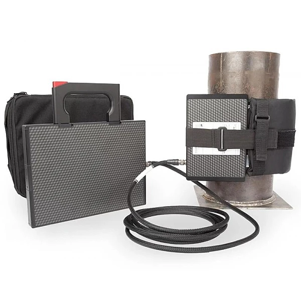 Беспроводной комплекс Экоскан 12 с гибким детектором предназначен для неразрушающего контроля промышленных изделий методом прямой цифровой радиографии. Подходит для контроля сварных соединений и мониторинга коррозии трубопроводов, находящихся в режиме эксплуатации, в том числе в условиях наличия внутри нефтепродукта.