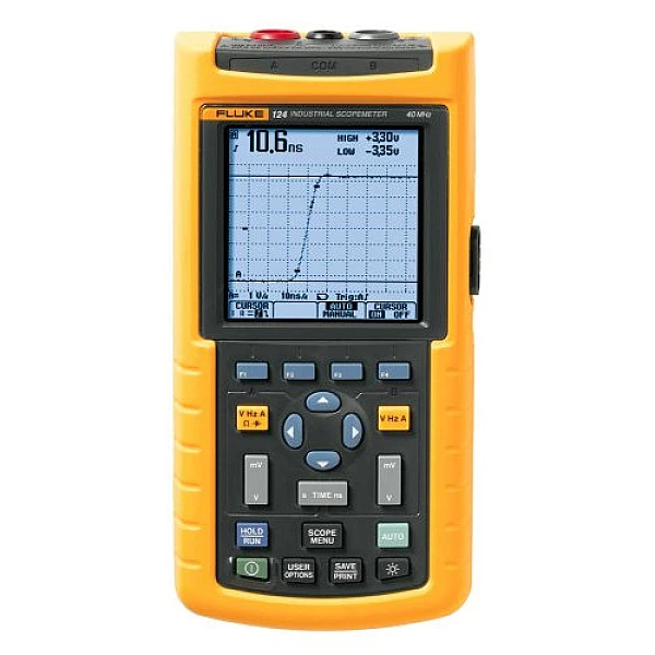 Fluke 124 представляет собой комбинированный многофункциональный осциллограф с электронным регистратором, позволяющим осуществлять непрерывную запись результатов измерений. Тестирование может производиться как разово, так в течение определенного периода времени. Сохранение и обработка полученных данных доступна посредством встроенных функций, а также при подключении Fluke 124 к ПК.