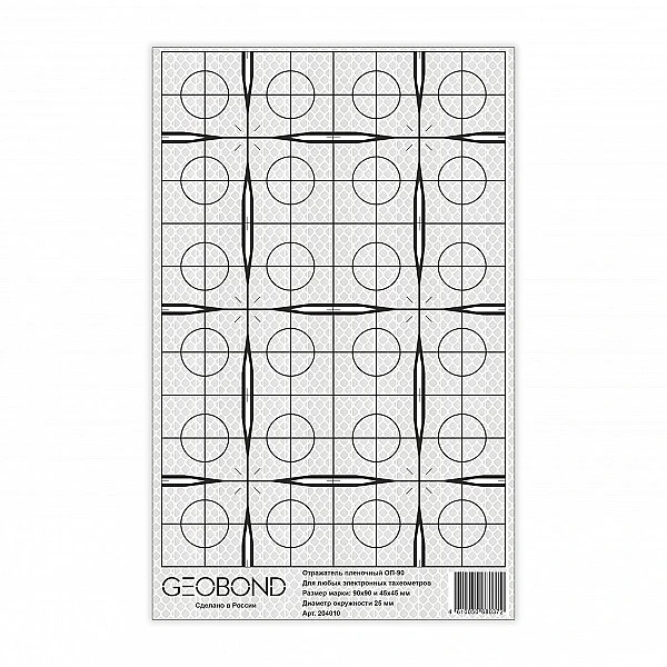 Пленочные отражатели Geobond ОП-90 используются с тахеометрами любых производителей. Изготовлены отражатели из новейшей высококачественной пленки призматического типа со сверхвысокой световозвращающей эффективностью. Коэффициент отражения данной пленки RA составляет 600 (кд/лк/ м2), что позволяет производить измерения на расстояниях до 500 метров.
