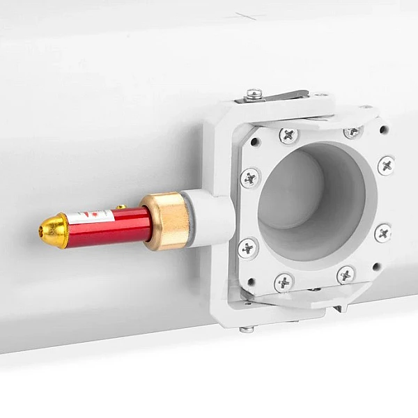 В блок излучателя встроен датчик температуры, который защищает его от перегрева: если изолирующее масло достигнет температуры +60 °С, работа блока прекратится. В центре фронтальной части излучателя находится выходное окно рентгеновской трубки, снабженное лазерным целеуказателем. Позиционирование блока излучателя относительно объекта контроля может осуществляться с помощью автоматизированных манипуляторов.