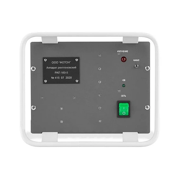 РАП 160-5 питается от однофазной сети переменного тока 220 В. Блок питания обеспечивает регулирование и стабилизацию режимов работы рентгеновской трубки, а также ее защиту от перегрузки. К блоку питания также могут подключаться сигнальная лампа-вспышка и дверные блокировочные контакты, которые служат для штатной блокировки аппарата при открытых дверях камеры или рентгенозащитного бокса.