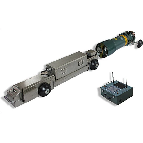 Автоматизирован, имеет индикатор запаса заряда аккумуляторных батарей, оснащен функцией предупреждения о наличие преграды или воды в трубопроводе, при низкой остаточной энергии батарей, самоходная рентгеновская установка кроулер возвращается из трубопровода.