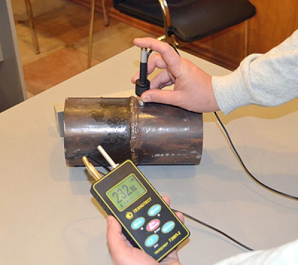 Твёрдость, предел прочности и условный предел текучести на растяжение труб с толщинами стенок свыше 8 мм измеряются твердомером ТЭМП-2 напрямую без каких-либо дополнительных методик.