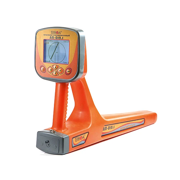 В составе комплекта приемник в виде моноблока с большим ЖК дисплеем, на который выводится изображение трассы и в автоматическом режиме происходит расчет глубины залегания коммуникации до 10 м, а также величины тока в линии.